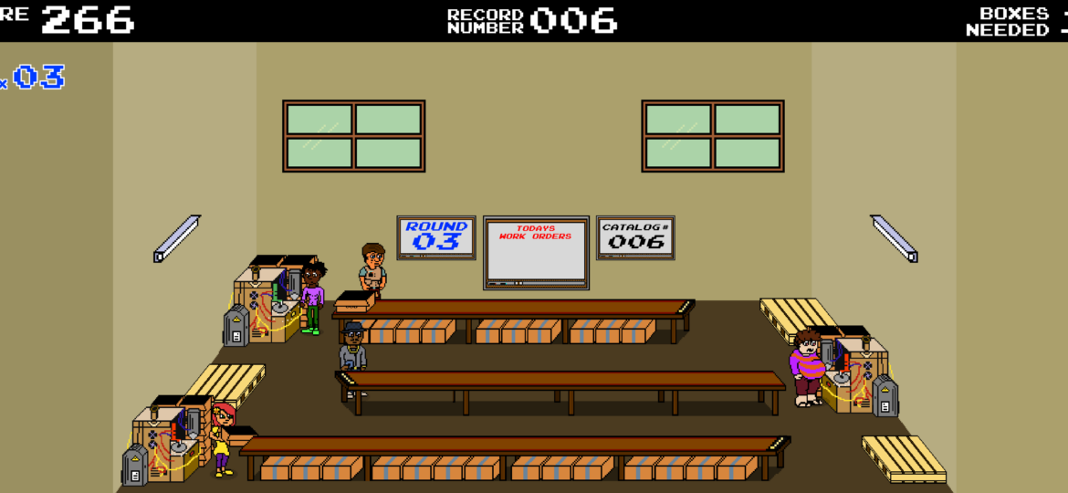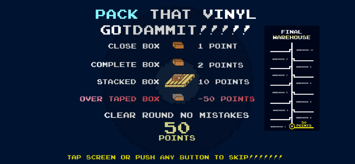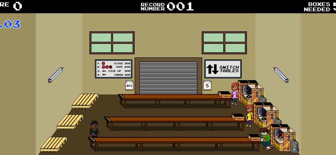 Fill packages with records, tape them and place them on pallets to fulfill the orders!
